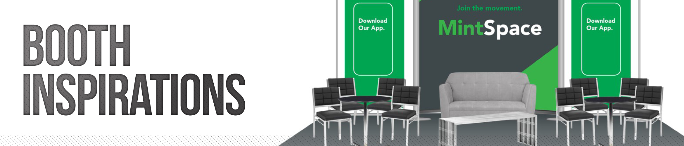 Get inspired. Browse our online 3D Booth Layout Gallery and use it as an inspiration tool to assist in your design process. We can accomodate even the most unique booth setups.